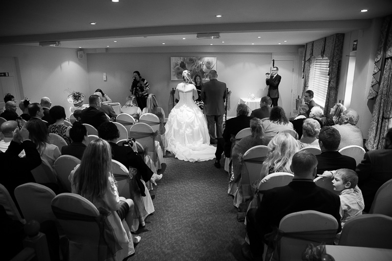 Amy & Steve had their ceremony and reception all at Ye Olde Plough House in Bulphan, Amy getting ready in one of the rooms close-by. Just before the ceremony, it decided to snow, only lightly but luckily the make-up artist had an old black cab so Amy and her Dad hitched a lift to the ceremony room at the front of the venue!