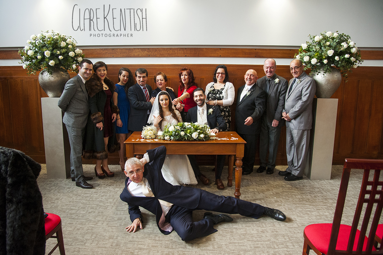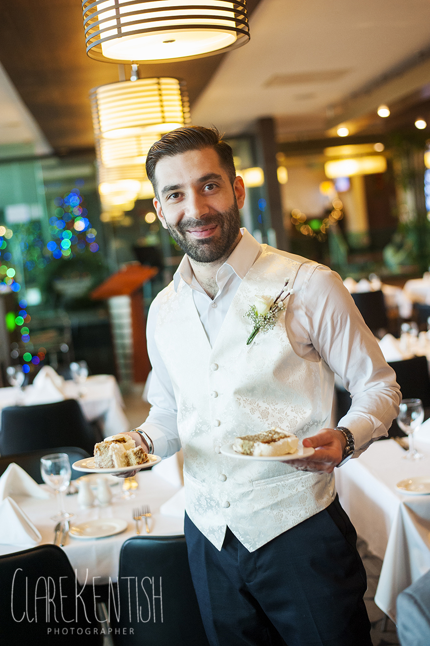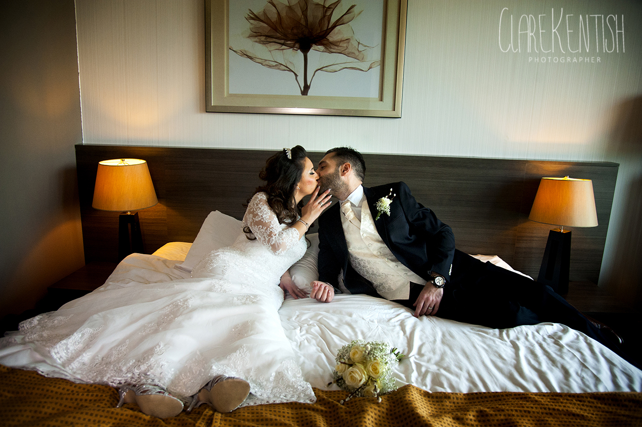 The ceremony was lovely, they only had 10 guests as they are planning a big wedding in Turkey later this year – this meant I got to know all their guests personally. (Nearly went car shopping with the Bride’s Dad!) Cinderella changed into her engagement dress for the meal – saving her wedding dress for Turkey. After a lovely Christmas dinner the rest of the guests went home and I joined the Bride & Groom in their hotel room – obviously we had to jump on the bed!