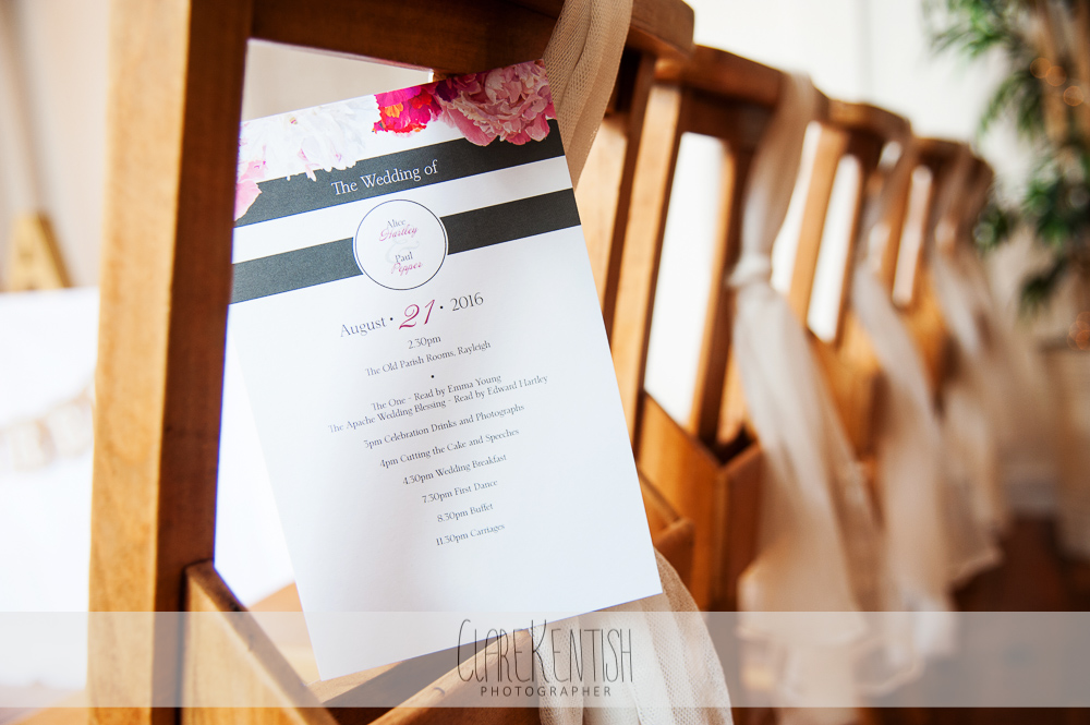 We started the morning super chilled – with Alice getting ready at home, before walking to Paul’s parents house round the corner for a glass of bubbles and some photos with the Bridesmaids. I caught up with Paul at the Half Moon in Rayleigh (my ‘local’ – again!) for a pint before heading across the road to the Old Parish Rooms for the ceremony.