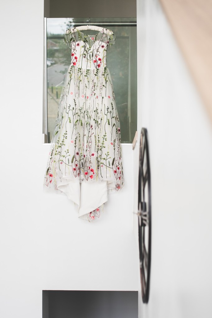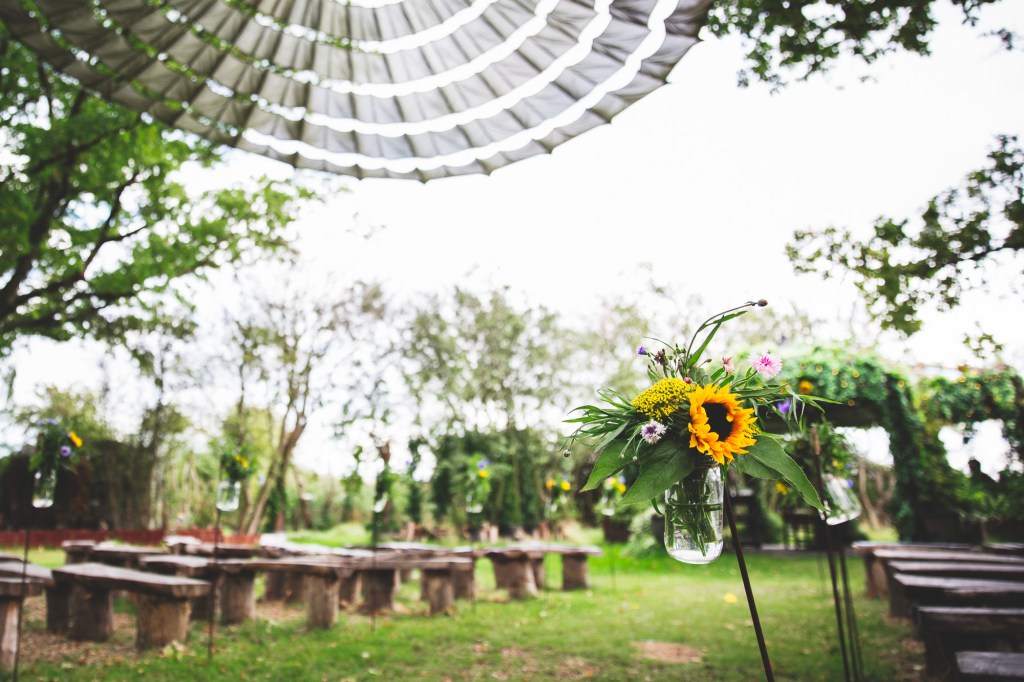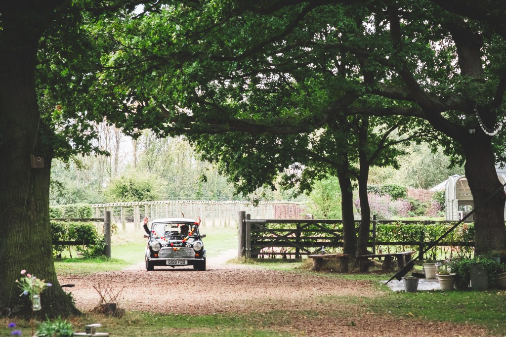 Woah! This wedding is a piece of me! Floral dress and sunflowers grown in the couples garden. Very exclusive wedding venue in woodland. Tacos and Mexican food for wedding breakfast and brownies for dessert. A water side stroll. Dad’s vintage Mini driving right up to the start of the aisle. The list goes on!