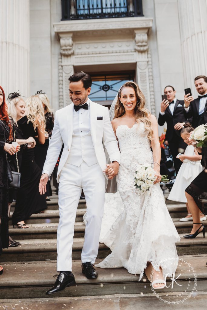 What a stunning wedding! I’m definitely a fan of just doing it your own way and it looked like C&D totally had the best of times! We started our morning getting ready at home, watching the marquee set-up come together. Jumped on party buses – two to keep the Bride & Groom separate ;) Arrived in the nick of time, at Old Marylebone Town Hall for a gorgeous intimate ceremony with 15 guests. A couple of photos out the front on the steps then back on the buses to a elegant reception at home – complete with bar, singer, magician, sax, cake and food… lots of food.