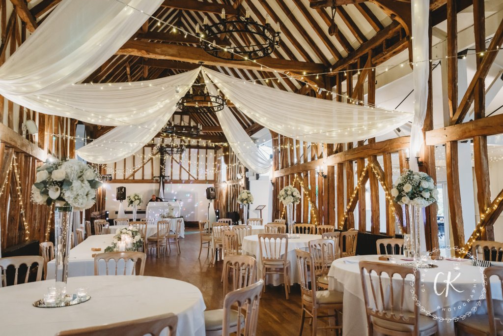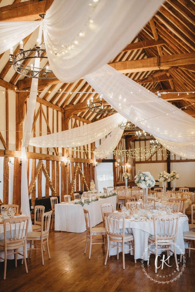 – B E A U tiful barn set up for the wedding breakfast (featuring drapes!)