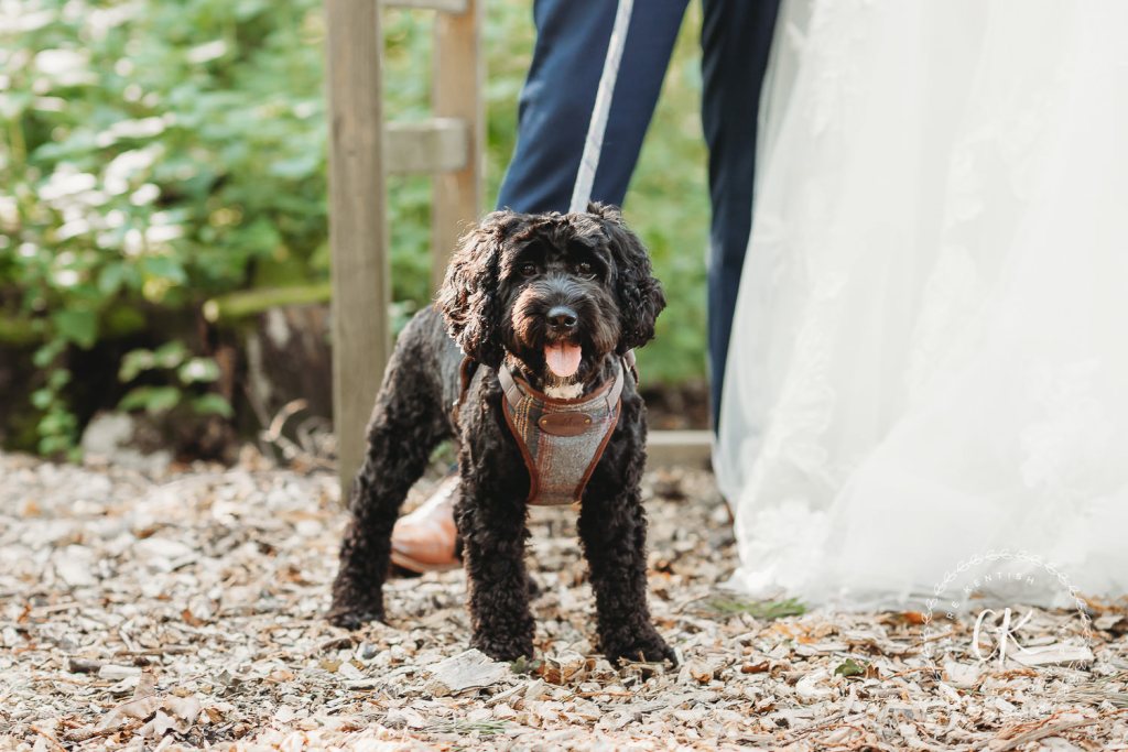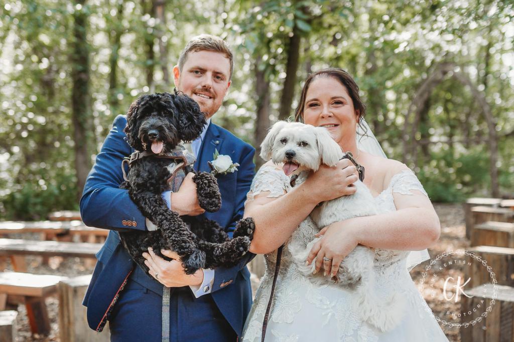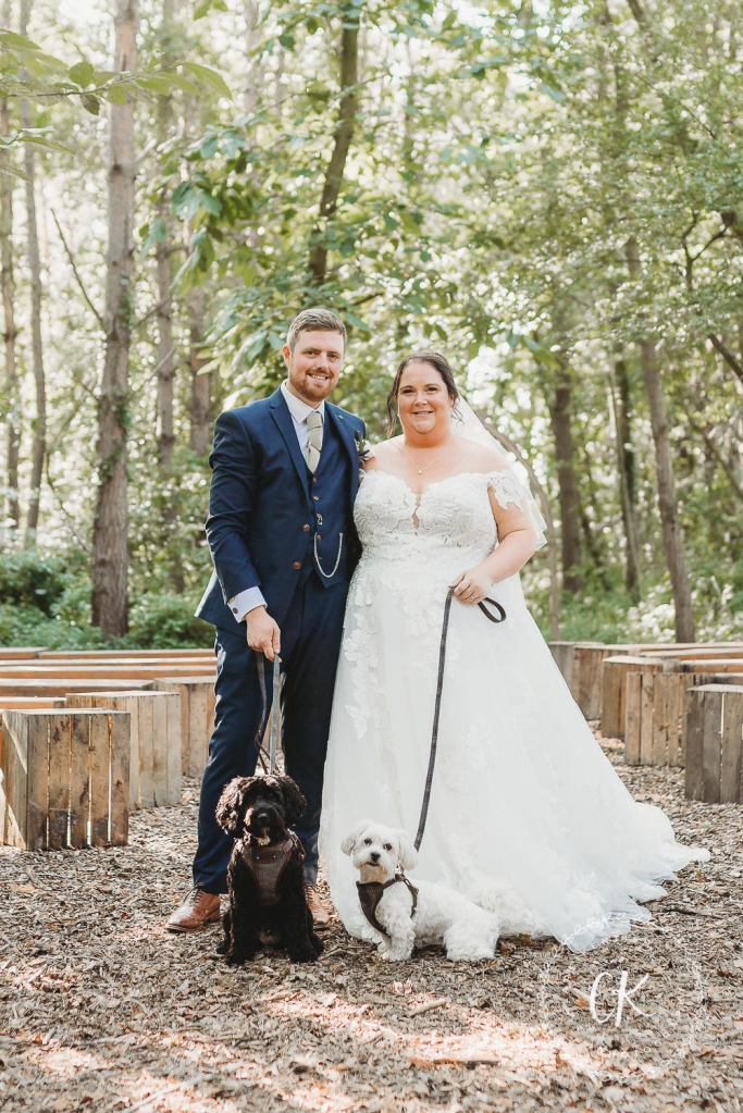 Drinks reception and some quick family groups in the gardens before the V.I.W.G. (Very Important Wedding Guests) arrived – Bella & Sybil the Bride & Groom’s dogs. We then jumped in the van and headed to All Manor of Event’s woodland (just past the alpacas!) – it’s easier to drive in any kind of extreme weather and one of my main concerns was it being too hot for the dogs in the heat of the midday sun so the woods made the perfect, cool environment for these photos. And it’s quiet!